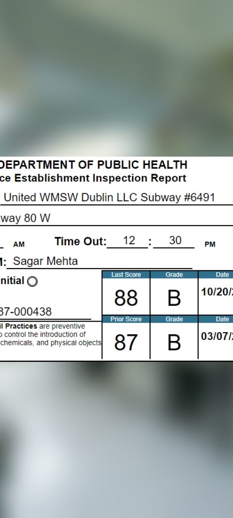 Subway in Dublin receives a 68% on their recent health inspection