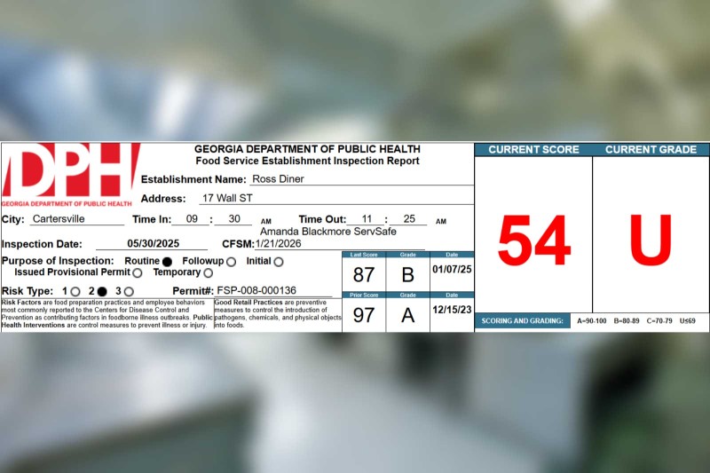 Ross Diner in Cartersville receives a 54% on their recent health inspection Bartow County News·Health Inspections