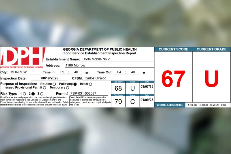 TBots Mobile in Morrow receives a 68% on their recent health inspection Clayton County News·Health Inspections
