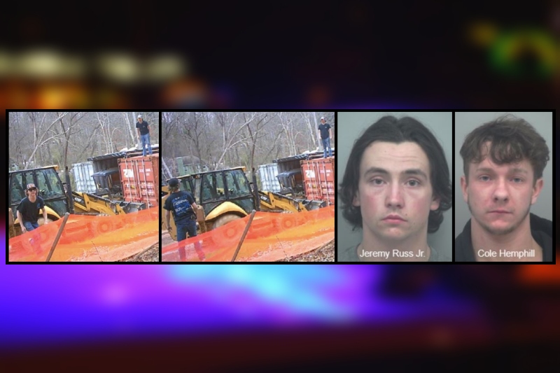 In reviewing the surveillance footage, two suspects were seen on camera damaging windshield wipers from two excavators, spray painting, jamming a screwdriver into the seat of a construction vehicle, and stealing two SIM cards from a security camera.