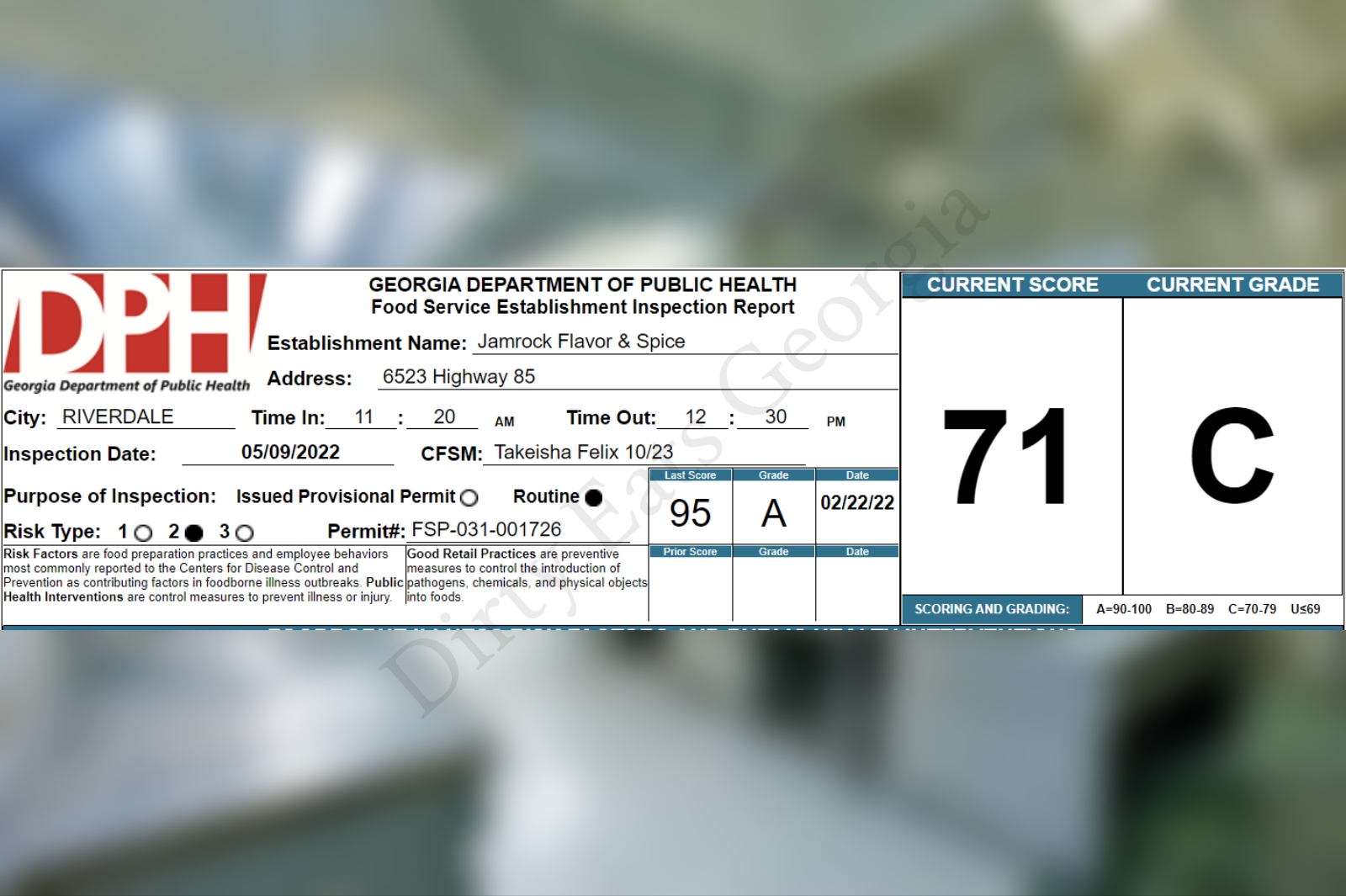 Jamrock Flavor & Spice receives a 71% on their recent health inspection
