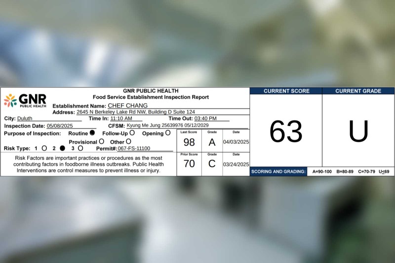 Chef Chang in Duluth receives a 63% on their recent health inspection Gwinnett County·Health Inspections