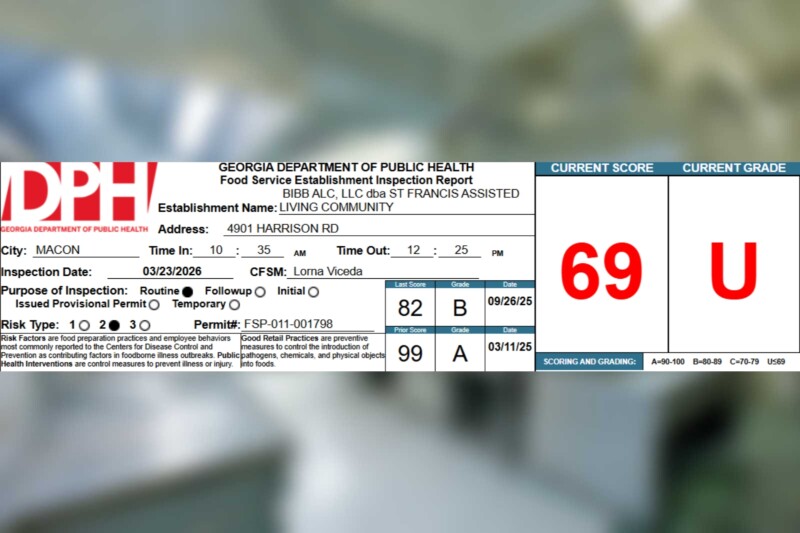 Bibb ALC, LLC Dba St Francis Assisted Living Community in Macon receives a 69% on their recent health inspection April 1, 2026