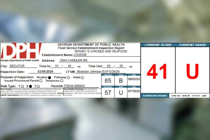 Spanky’s Chicken and Seafood Lounge in Decatur receives a 41% on their recent health inspection March 8, 2024