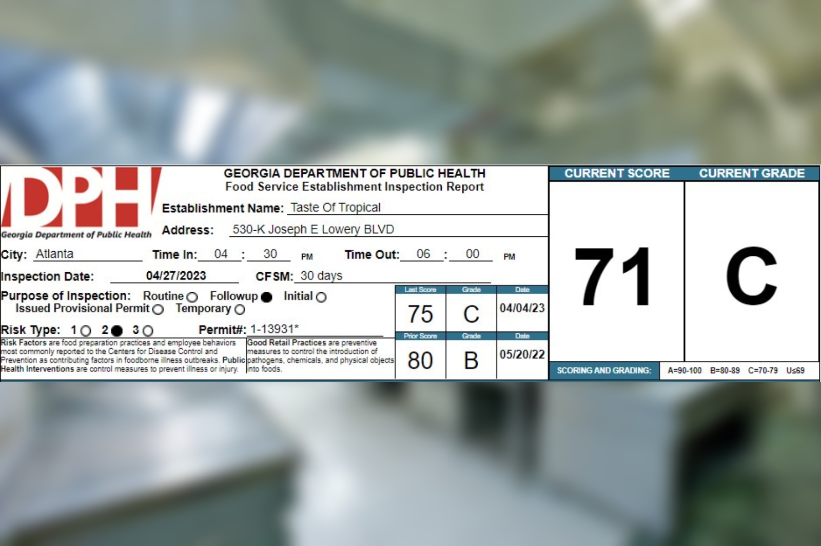 Ribbys Wings and Ribs in Lawrenceville receives a 77% on their recent health inspection April 27, 2023