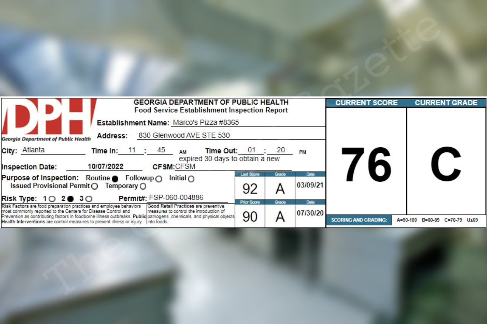 El Rocio Mexican Restaurant in Atlanta receives a 78% on their recent health inspection October 10, 2022
